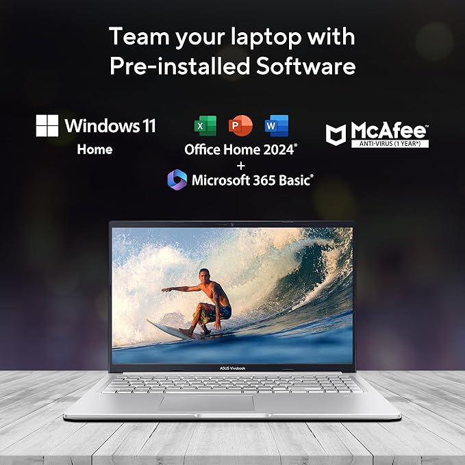 ASUS Vivobook 15,13th Gen,Intel Core i7-13620H(Intel UHD iGPU/16GB RAM/1TB SSD/FHD/15.6"/60Hz/Backlit Keyboard/42Whr/Windows 11/M365 Basic (1Year)*/Office Home 2024/Cool Silver/1.7 Kg)X1502VA-BQ1299WS