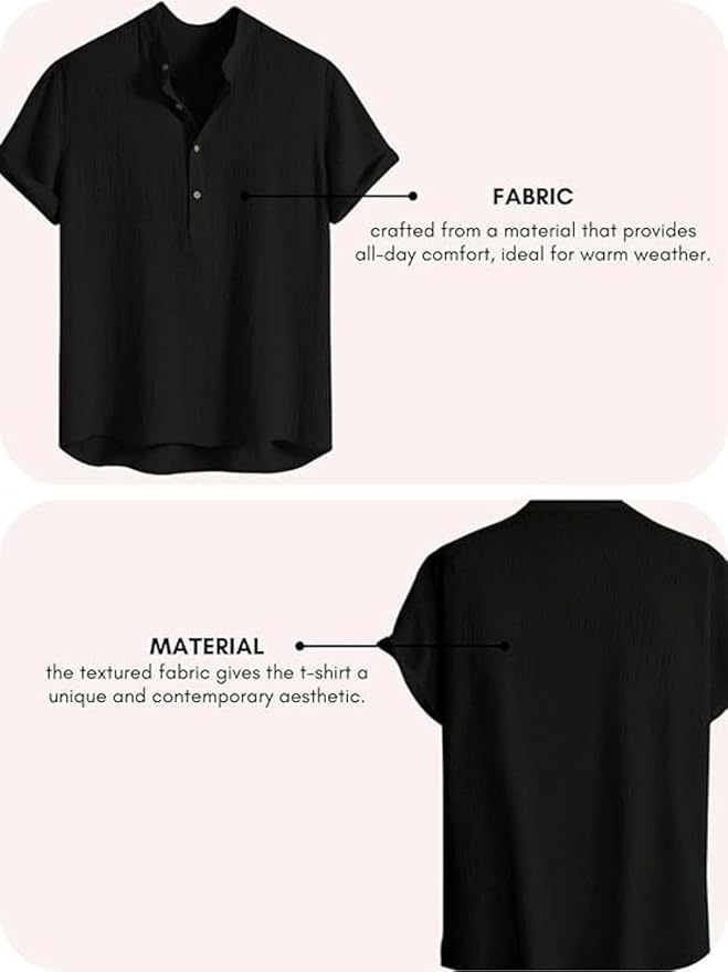 Stylish Design: Perfect for office or formal events, offering a sharp and professional look Men formal shirt Premium Quality: our half sleeve shirt for men is made from high-quality breathable textured fabric materials for lasting durability palin shirt for men stylish. Perfect Fit: trendy design to keep you looking fashionable, mens casual shirt yet comfortable for daily wear,office wear,party wear. Enhance Look : enhance your look by wearing this short kurta shirt for men, team it with a pair of tapered denims pants, cargo pants, shorts for a modern look. Occasion: Suitable for a range of occasions, from casual meet-ups to relaxed weekends.