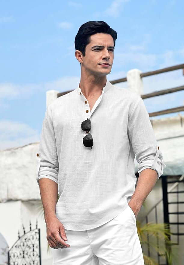 | Material compositionCotton Blend Sleeve typeFull Sleeve LengthWaist Length Neck styleMandarin Neck PatternSolid StyleRegular Country of OriginIndia |