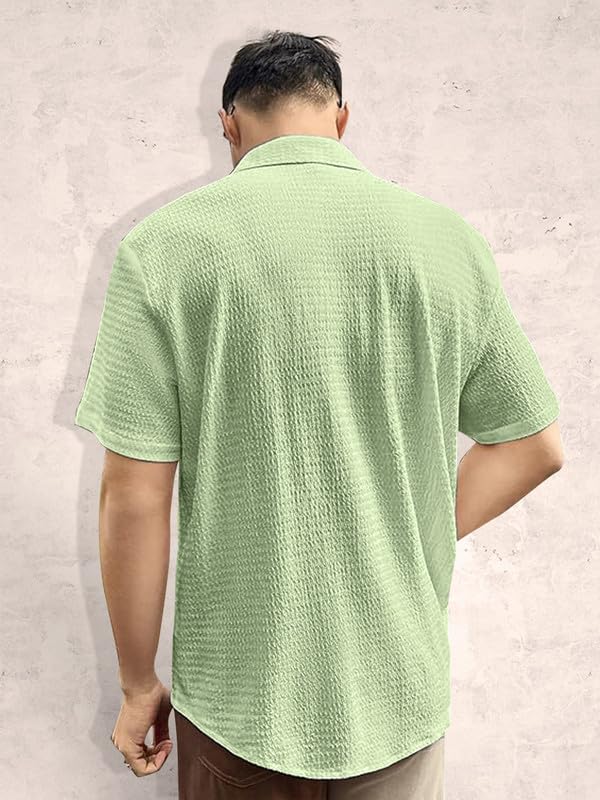 Pinkmint Popcorn Shirt for Men Soild Slim Fit Sleeve Spread Collar Trendy Men Shirt Summer Wear Goa Wear Olive
