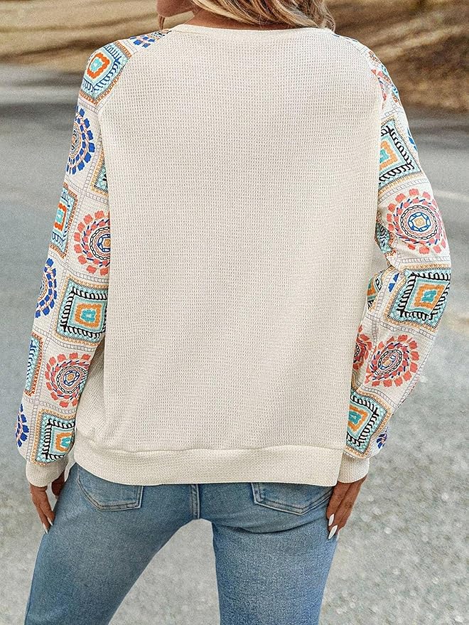 Geometric Regular Fit Floral Print Round Nack Full l Long Sleeve Trendy TOP for Womens