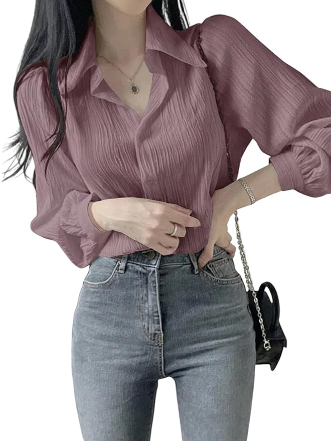 Leriya Fashion Women's Crepe Regular Fit Top Korean Style Long Sleeve Oversized Button Down