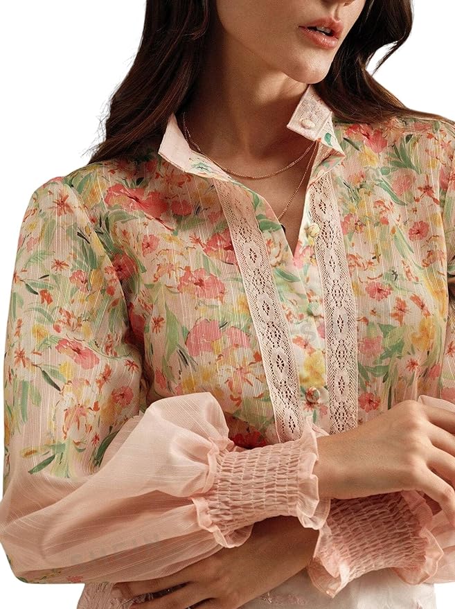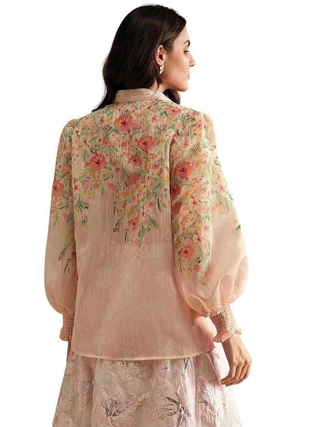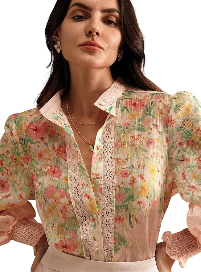 Gufrina Women’s Casual Button-Down Shirt with Multicolor Floral Print & Half Sleeves, Collar Neck