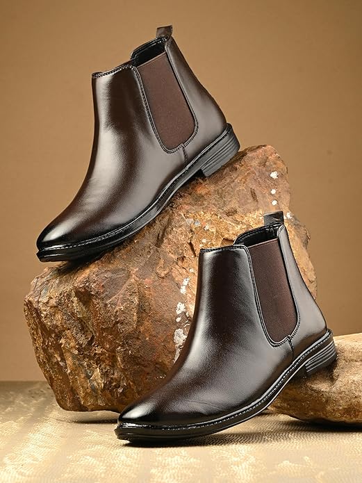 Product Type: Men's Outdoor Ankle Boots / Casual Shoes | Material: Synthetic Leather | Sole Material: Best Quality Airmix The Memory foam insole is comfortable and soft which absorbs the impact force in motion, reduces the burden on the body. It makes you feel like you are walking on the clouds. Featuring the timeless Chelsea boot silhouette, these boots come with elastic side panels and a pull-tab at the back for easy on and off. The sleek design and minimalist aesthetic make them a versatile addition to your wardrobe. Designed for all-day wear, these boots come with a cushioned insole that provides excellent support and comfort. The flexible sole allows for natural movement, making them perfect for both formal and casual occasions. Care Instruction : Wipe gently with a dry cloth to remove any dried-on dirt and dust