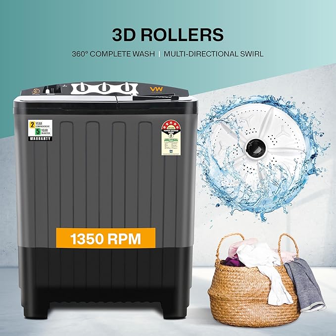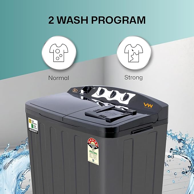 Product Dimensions 75D x 47W x 95H Centimeters Brand VW Capacity 7.5 Kilograms Special Feature ANTI RUST, Roller Jet Pulsator, Collar Scrubber, Lint collector, 3 Wash Program Access Location Top Load