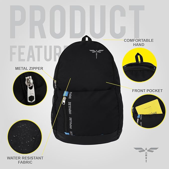 SPACIOUS AND LIGHTWEIGHT: Light weight & spacious 3 Compartment with laptop sleeves fits upto 16 Inch laptop, Multi Pockets to keep your essentials. Organizer pockets as per needs. . It has provision for holding bottles on both sides and has padded shoulder straps for your comfort.Made with strong yet light weight polyester fabric with heavy zippers ERGONOMIC DESIGN: Thick cushioning around the shoulders and on the back panel makes the backpack super light and comfortable on the move. “S” Shaped shoulder strap distribute the weight of the backpack across your upper body. Stitched properly and Bartacks on every pressure point for extra durability WATER RESISTANT MATERIAL: The Material ensures resistance to water entering from any direction. MADE IN INDIA – Impulse Travel Backpack is fully manufactured in India and pass through stringent quality tests and checks