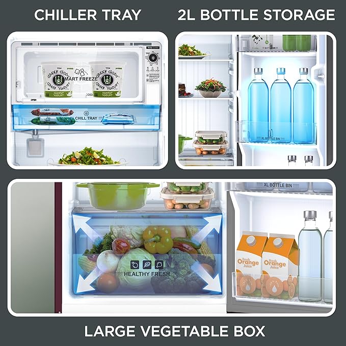 | providing fast cooling that is energy-efficient. It’s perfect for small families or bachelors who need quick and effective cooling while keeping electricity costs low. Optimal Storage Capacity | With a total capacity of 187 litres |