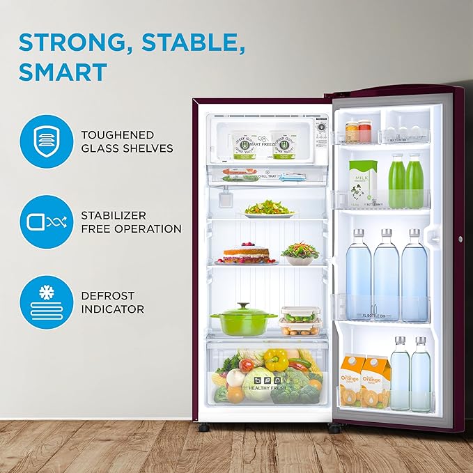| providing fast and efficient cooling without the need for external fans. It helps maintain freshness while being energy-efficient and is an ideal solution for homes looking for long-lasting and economical refrigeration. Optimized 187-Litre Capacity | With a total capacity of 187 litres |