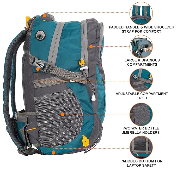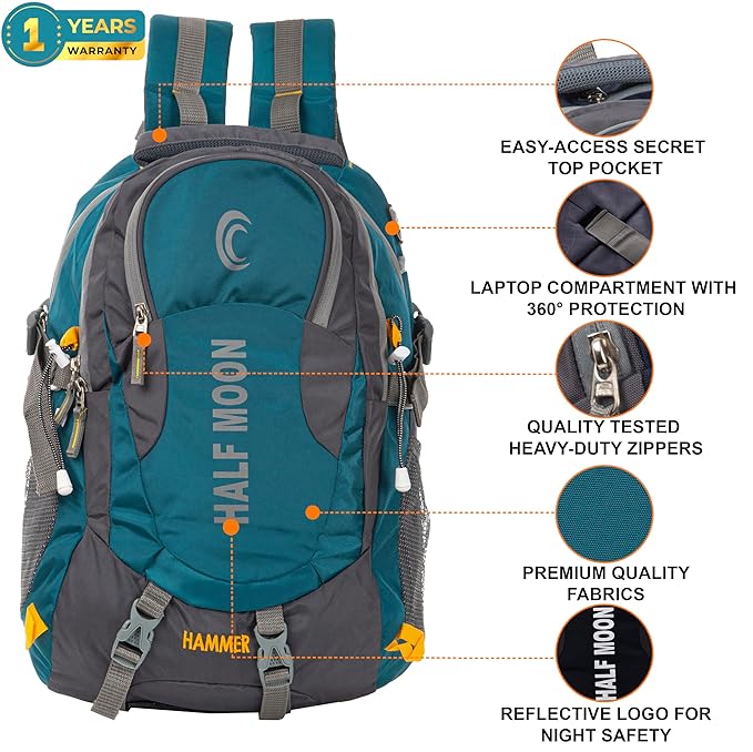 Unlock Secrets, Carry Confidence: Discover the power of discretion with an easy-access secret top pocket under the bag's handle, perfect for safeguarding valuables. Add an extra layer of security with hip belt pockets—an essential feature for keeping your essentials within arm's reach while traveling. Your confidence, our commitment. Fortress for Your Tech: Elevate your laptop's safety with a 360-degree protected compartment, combining security and accessibility. Your digital companion travels in style, protected against the elements. Durable Elegance, Unyielding Security: Embrace the journey with quality-tested heavy-duty zippers and premium quality fabric. Every detail reflects durability, ensuring your backpack stands the test of time, even in the toughest conditions. Plus, enjoy added peace of mind with our included 1-year warranty against manufacturing defects. Rule the Night with Reflective Assurance: Shine bright in the night with a reflective logo. Style meets functionality, providing visibility during nighttime adventures. Special Features: Back Padding, Chest Strap, Secret Top Handle Pocket, Earphone Cord Support, Unique Design, Hip Belt, Easy Access Hip Belt Pocket, Rain Cover, Laptop Compartment, Telescope Handle, Water Bottle / Umbrella Pouch, Zip Closure, Padded Handles, Padded Shoulder Strap, Breathable Mesh etc.
