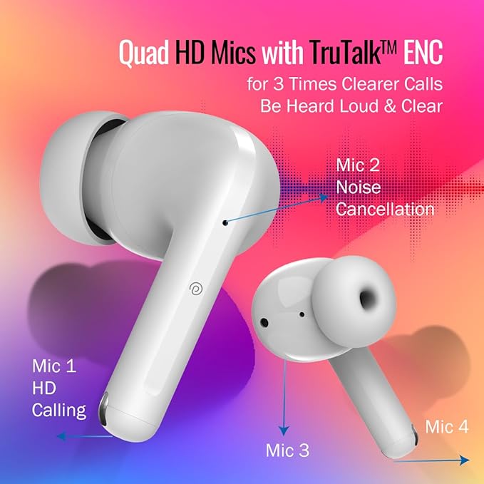 | Quad Mic & TruTalk ENC technology effectively reduces environmental noise during the calls | |