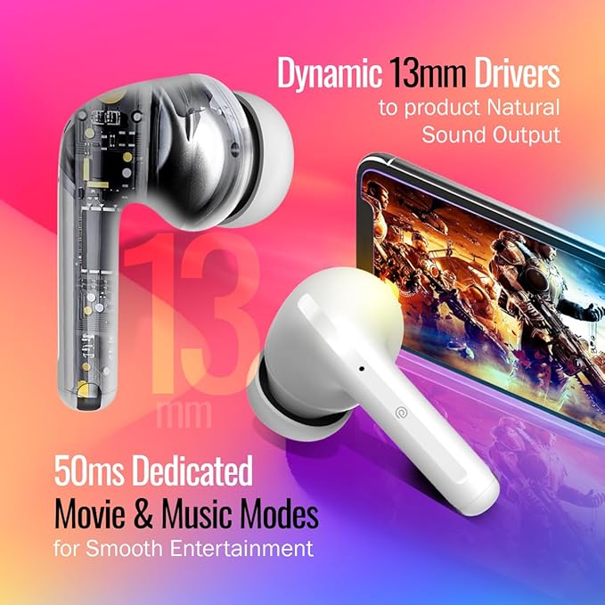 | delivering up to 3 times clearer calls & minimum noise cancellation of 30dB | Be Heard Loud & Clear;Gigantic 60 hours combined playtime with the charging case (fully charged earbuds & case) | Large 13mm dynamic Drivers for Immersive Audio | Dedicated Movie/Music Modes for Mobile Entertainment BT5.3 wireless technology greatly improves the transmission speed & providing you with 1-Step quick pairing | |