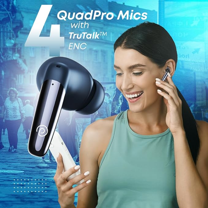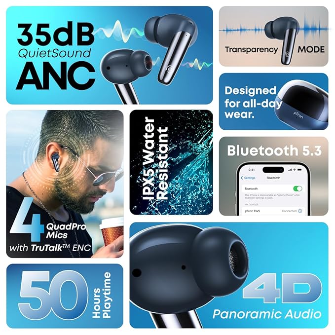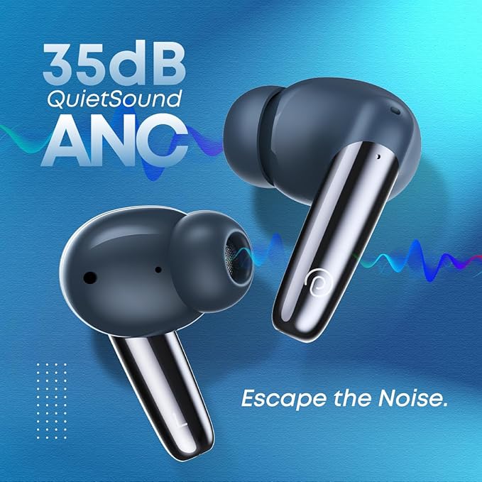 | 35dB Hybrid ANC Earbuds | Active Noise Cancellation cancels background noise up to -35dB for an immersive listening experience | Transparency Mode to hear your surroundings whenever you want. 4 HD Microphones & ENC for 3 Times Clearer Calls |
