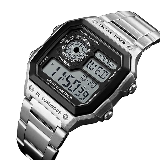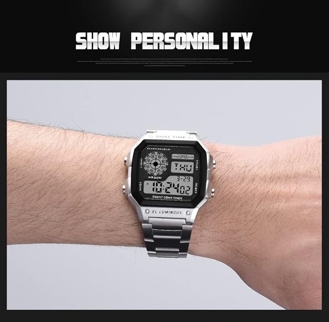 Japanese Movement Imported Japanese quartz movement and battery guarantee accurate time and long durability. Dimensions: Case Width - 43mm, Case Length- 52mm, Case Thickness: 13mm, Band Width- 18mm, Band Length-Adjustable Features : Stopwatch, Water Resistant , Week Display, Alarm, 12/24 Hour Wide Application : Men of All Ages Can Wear This Watch! Grab for The Day, Work, Traveling, Shopping, Hanging Out, Walking or Just to Relax In. Pair It with Any Type of Outfit from Casual to Sporty and Everywhere In Between