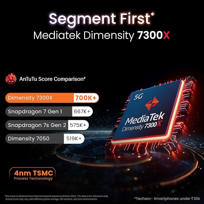 | 2X Portrait Zoom & 16MP Front Camera with Samsung Sensor & EIS Impeccable Performance & Thermal Management | Segment's 1st powerful Dimensity 7300X processor |