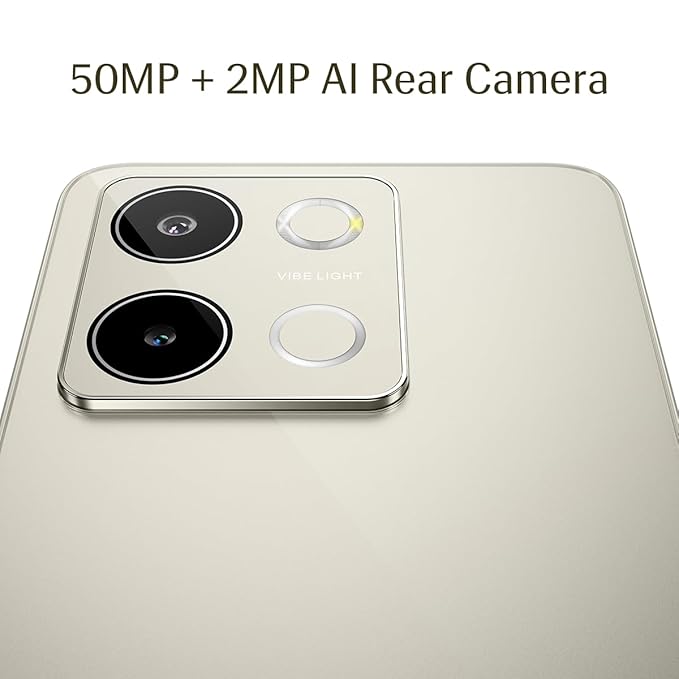 | 128 GB UFS2.2 ROM); Upto 12GB Expandable RAM VIBE Light Dimensity 6300 Processor (Antutu score 420k+) 50MP + 2MP Dual AI Camera Punch Hole display with 90 Hz Refresh rate and Anonymous Auto call recording |