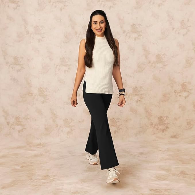 Blissclub brings you our super stretchy and lightweight flare pants. Made of 25% spandex and 75% polyester these pants offer a 4-way stretch so you can move unrestricted The fabric is lightweight, stretchable, sweat-wicking, and peached to be extra soft. These super lightweight, seamless pants feature a high elastic waistband for a secure fit. The extra flare below the knee lets you move totally restriction free. It also has an elasticated waistband and an invisible pocket at the back to hold all your essentials. The thoughtfully designed triangle gusset prevents cameltoe for a sleek look. We, at Blissclub, are on a mission to engineer products that enable Indian women to move intentionally and unabashedly.