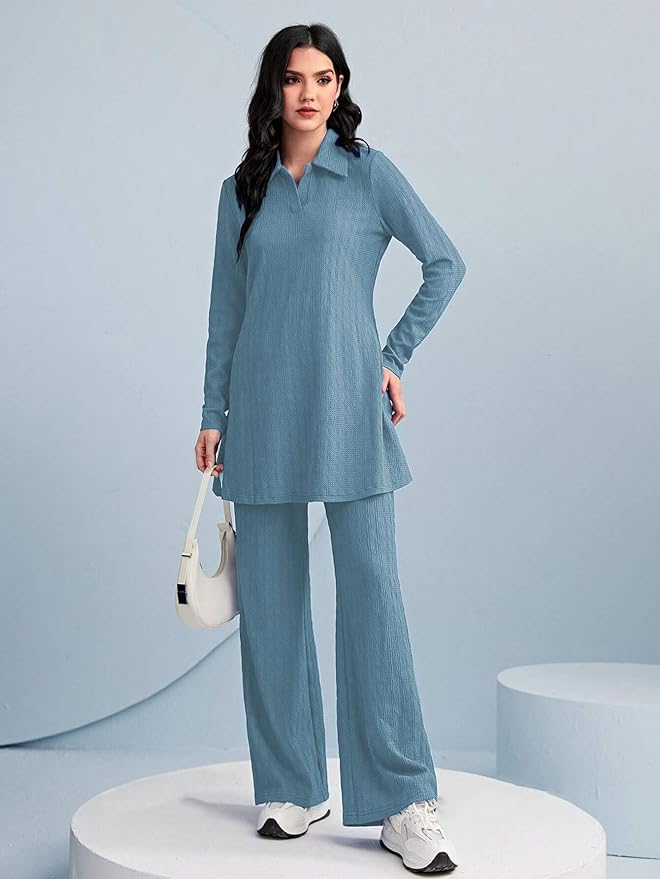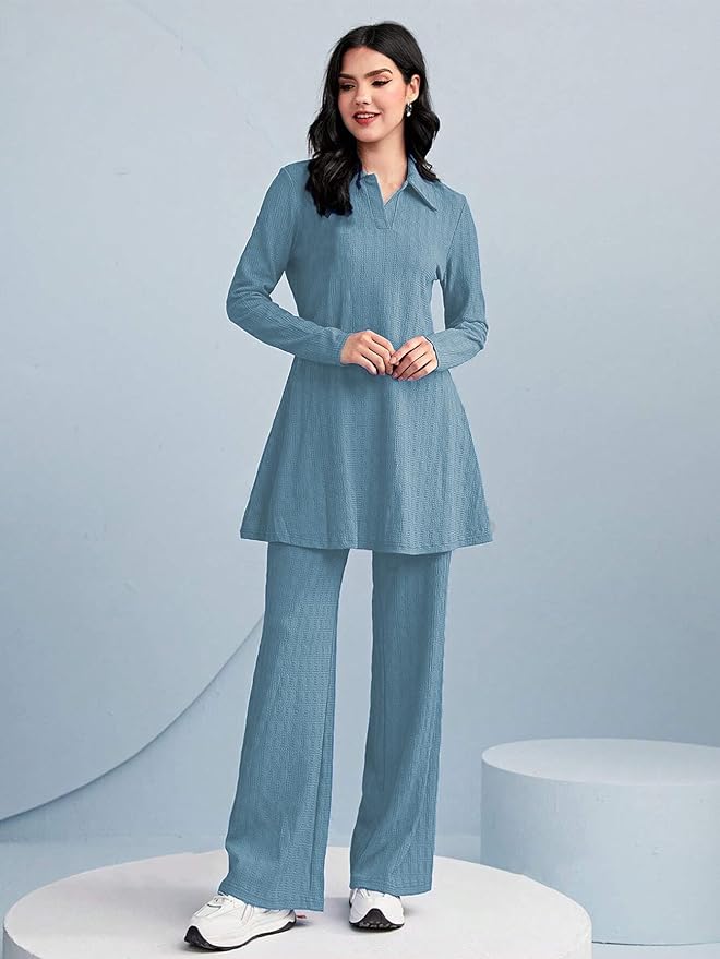 This set includes: 1 Top with 1 Pant | Work Type : Solid | Neck Style:- Collar Neck Kurta and Bottom Fabric: Imported Fabric | Set Color :- Aqua Colour Declaration: There might be slight variation in the actual color of the product due to different screen resolutions. Ocassion: Anniversary, New Year, Birthday, Bachelor Party, Valentine's Day