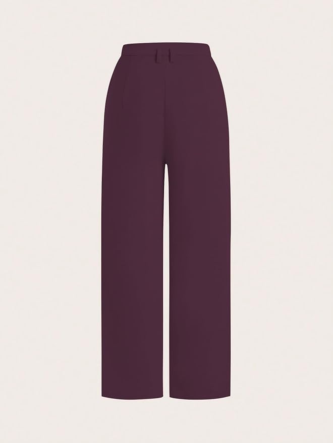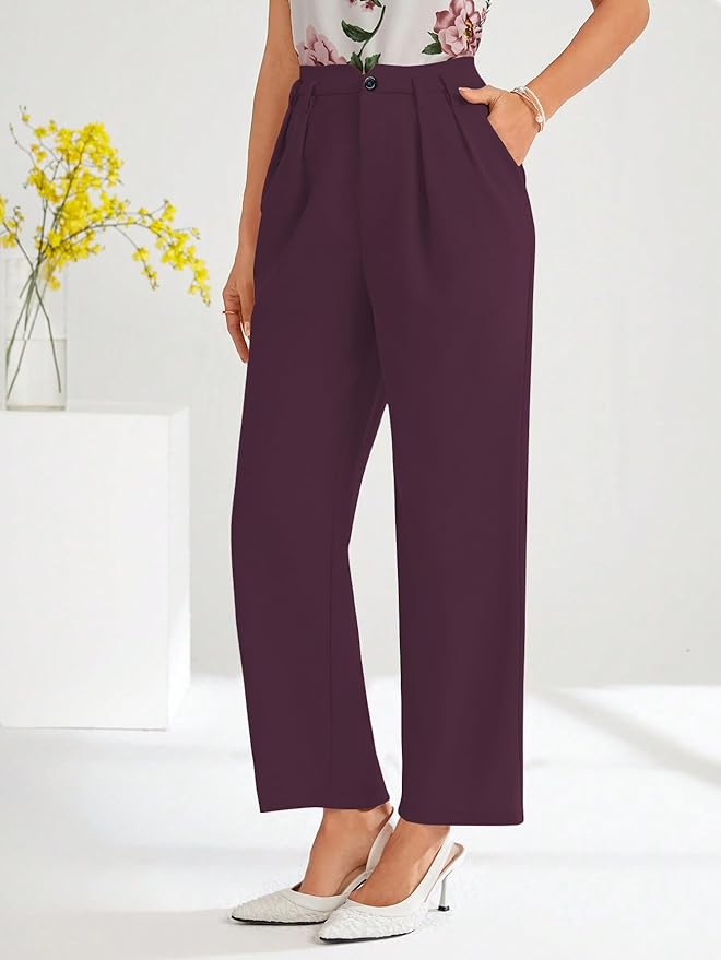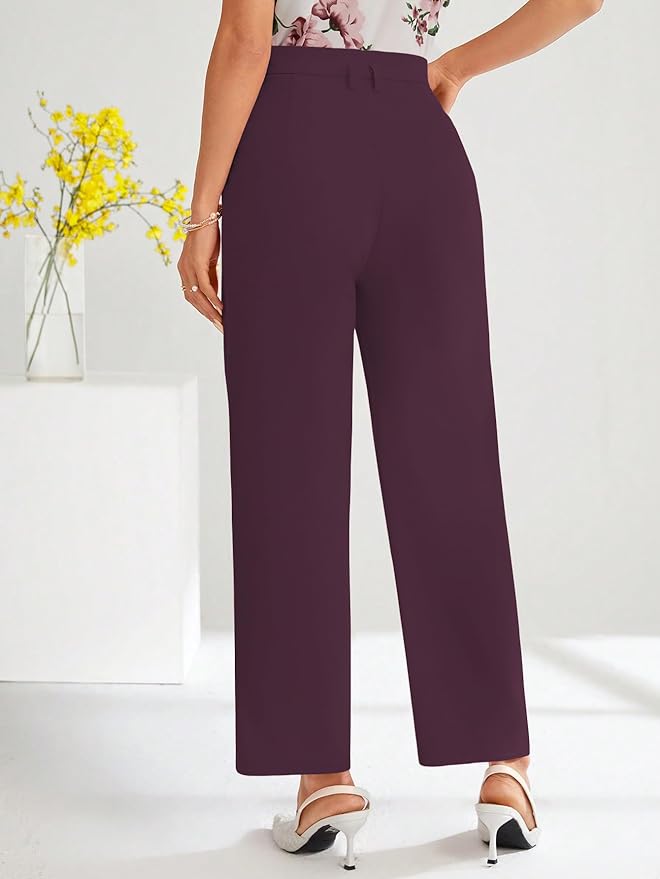 women pants ll high waist pants ll straight leg trousers ll wide leg trousers ll seam detail pants ll flared trousers women ll regular fit pants women DESIGN FEATURES: High-waisted trousers with elegant pleated detailing, straight-leg silhouette, and sophisticated pink colour for a polished look COMFORTABLE FIT: Tailored cut with relaxed straight legs and pleated waist design ensures comfort for all-day wear PRACTICAL POCKETS: Convenient slant pockets provide functional storage while maintaining the sleek appearance of the trousers VERSATILE STYLE: Perfect for both office wear and casual settings, easily paired with various tops for different occasions