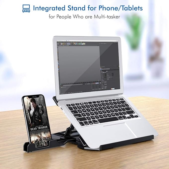 | feel comfortable to work. Sturdy & Durable | Made of ABS with non-slip rubber surface pads to keep the laptop in place |