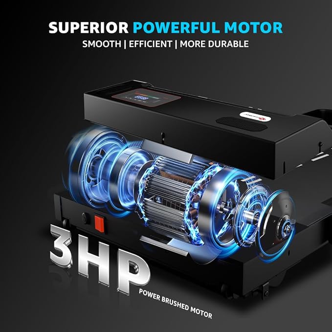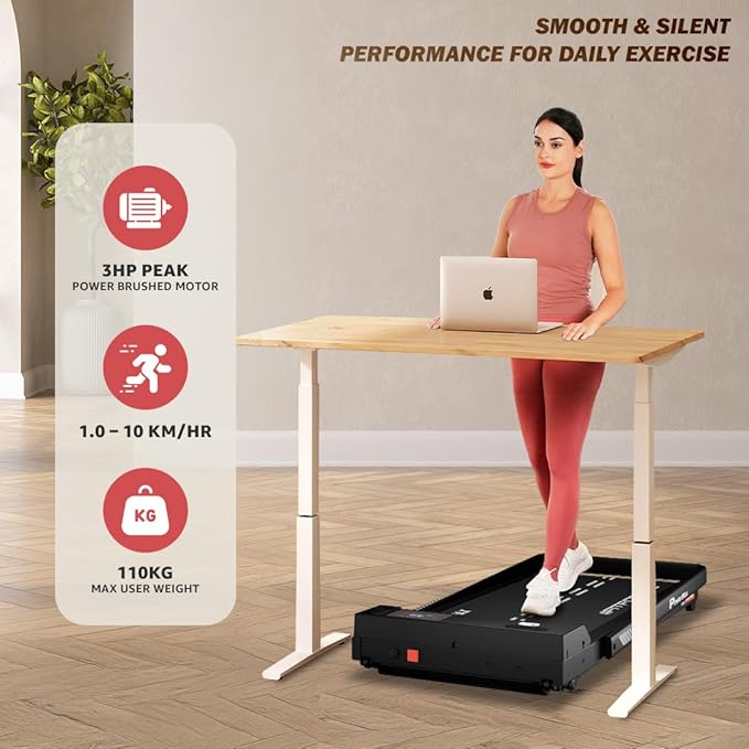 PowerMax Fitness Walkpad 3HP Compact Motorized Treadmill for Home-Office Use with Remote Control,Joggingpad for Max User 110Kg,Top Speed 10Km/H,1000X400Mm Running Deck,LED Display,iPad Holder,Black
