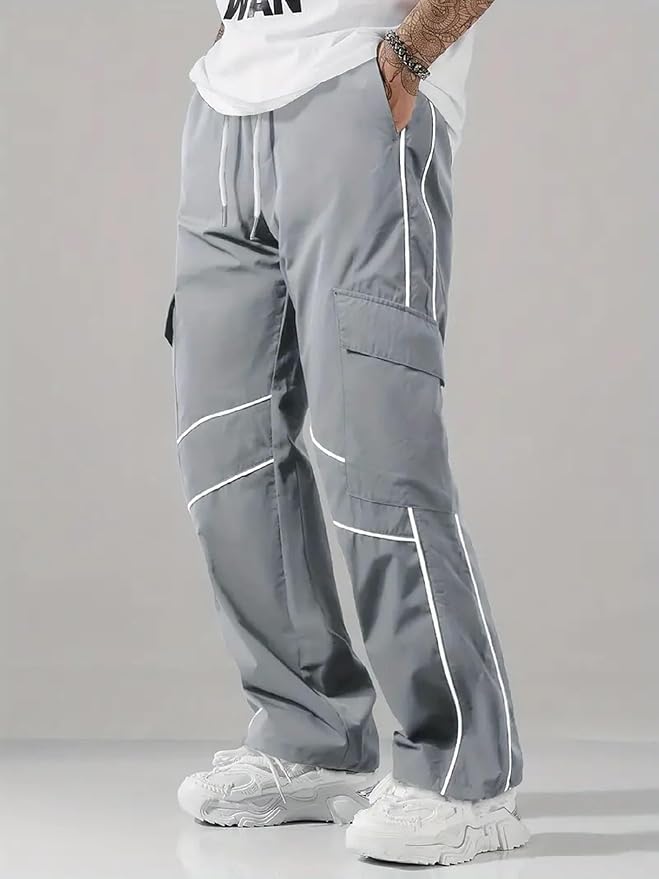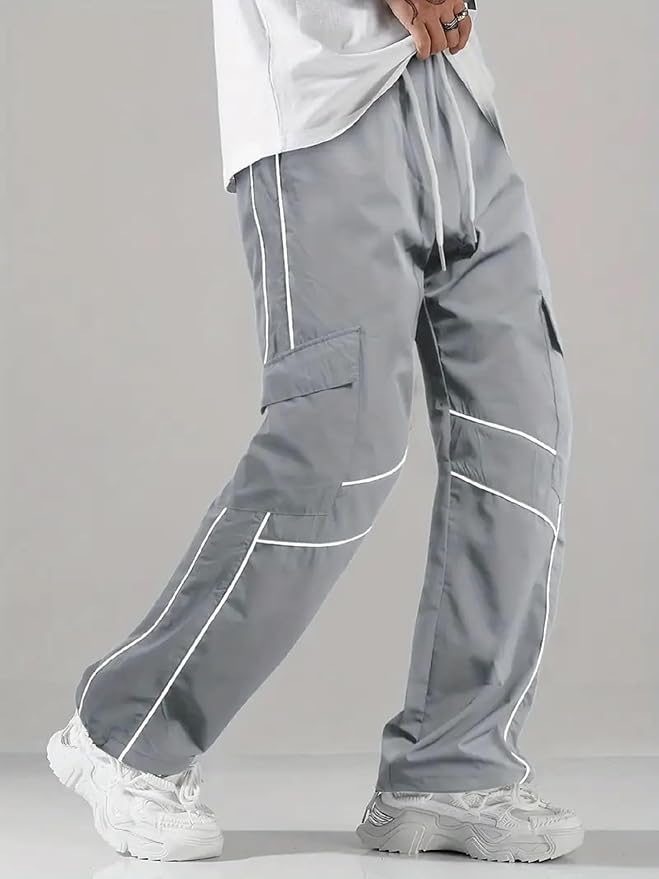 Korean Style Track Pants for Men – Loose Fit Lycra Cargo Joggers | Trendy Gym & Streetwear Bottoms with Utility Pockets