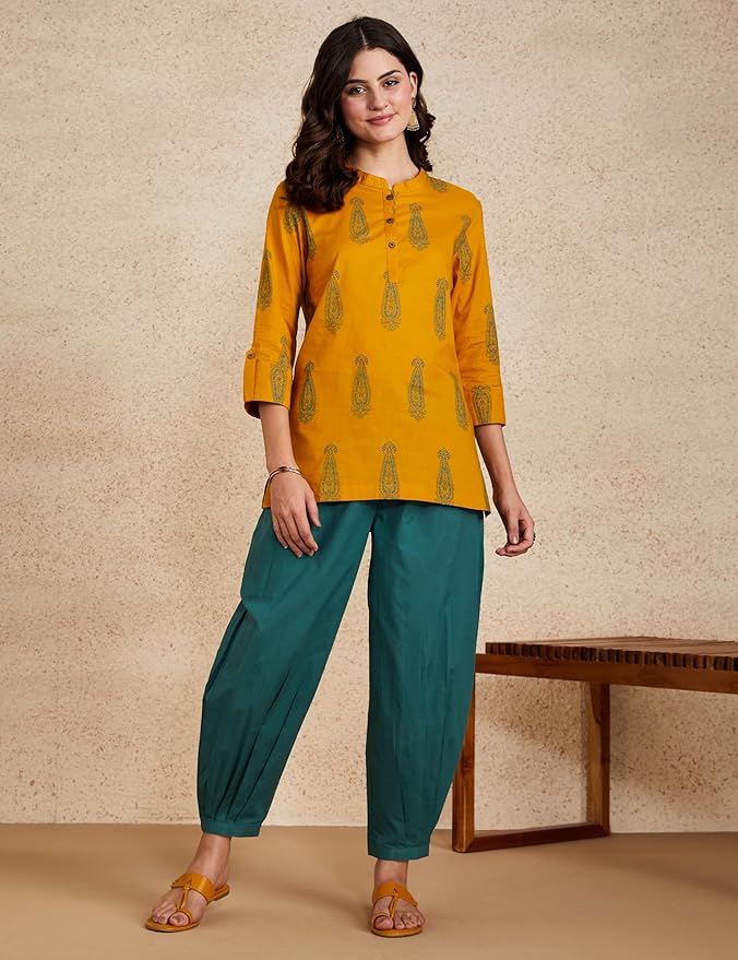 Arayna Women's Pure Cotton Paisley Printed Tunic Top – Comfortable Everyday Wear