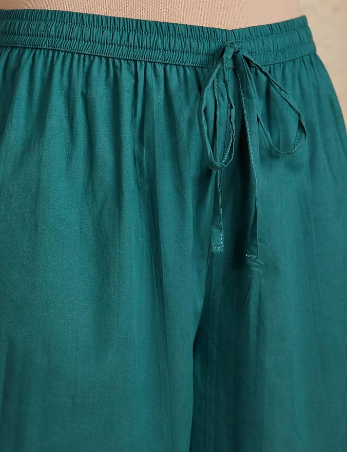 FABRIC: Non-sheer, pure cotton cambric with special softener finish for smooth feel. PRODUCT DETAILS: Ankle length, stylised Afghan salwar with elasticated waist band and drawstring detail featuring pleats at hem. WORKMANSHIP: Crafted with high quality stitching and skin-friendly elastic at waist for added comfort and durability. STYLE TIPS: Pair with kurtas or tunics, add statement jewellery and ethnic flats for a chic look. FIND YOUR PERFECT FIT: Please refer to the 5th image in our catalogue for a detailed size and fit guide. SUSTAINABILITY COMMITMENT: This product is made in a certified factory that is committed to ethical labour practices. We use FSC certified tags and re-cycled packaging.