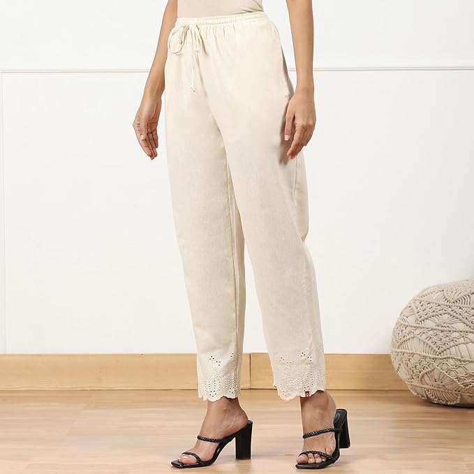 | Material typeCotton Blend LengthLong Length StyleBiba Women Straight Cotton Blend Solid Pant Closure typePull On Occasion typeCasual Care instructionsHand Wash Only Country of OriginIndia |