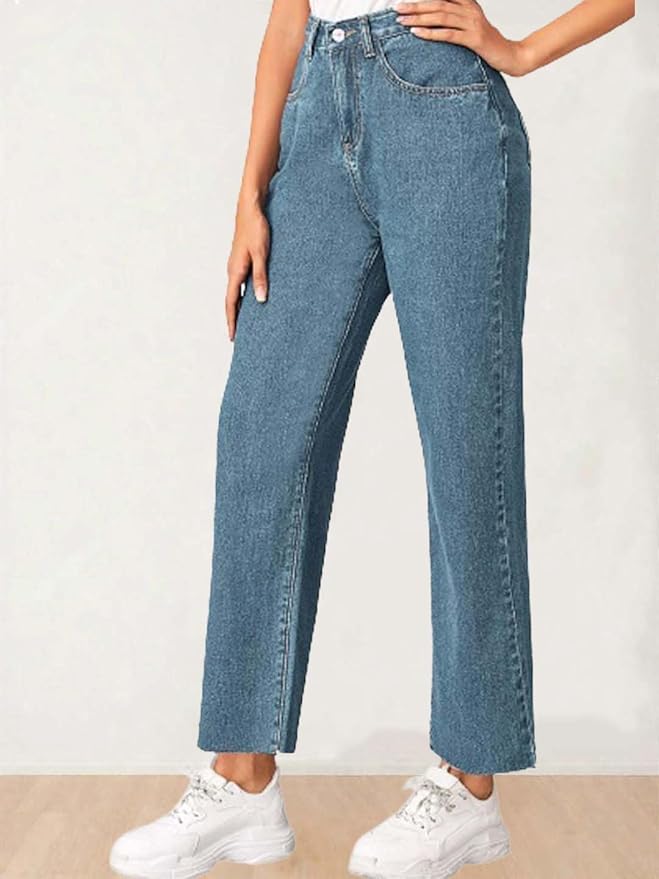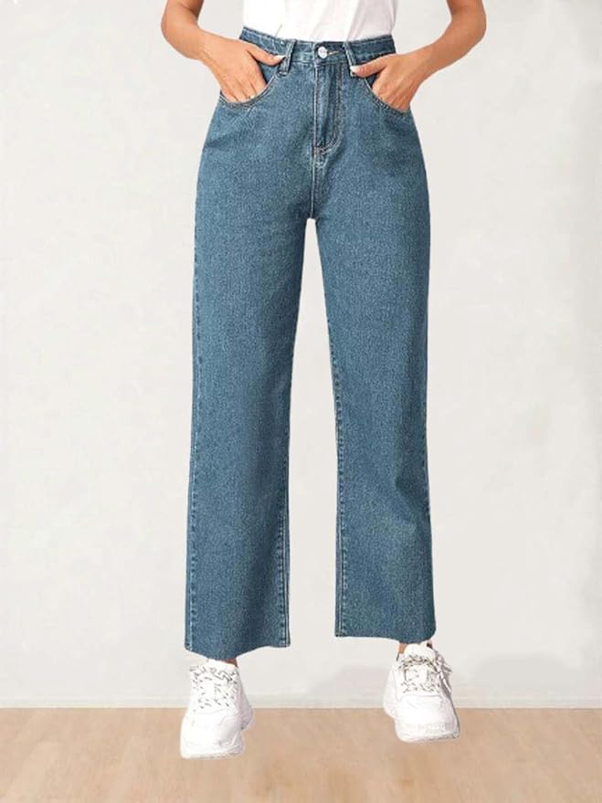 Women’s High-Waist Button Relaxed Fit Casual Ankle Length Stylish Jeans