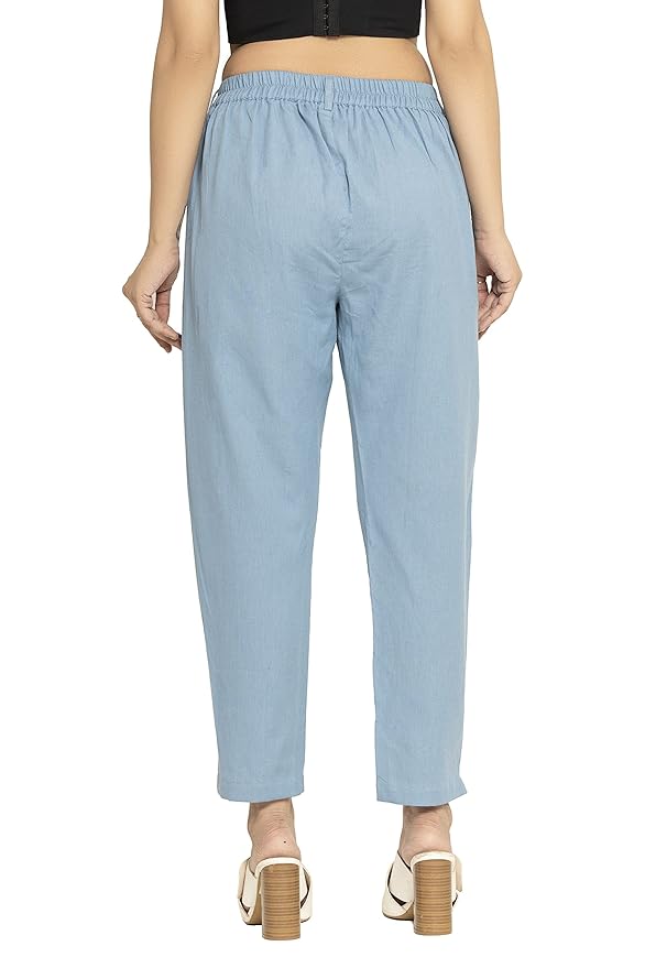 Fit Type: Regular Fit ankle trousers. Material: This Trouser is made up of Pure Cotton. Ideal For: Women, Occasionalwear, Casual, Work wear, Closure Type: Elastication. Fit Type: RegularFit, Style: Cigarette Pant/Pencil Pant/ Kurti Pant. Pattern: Solid; Closure: Elastic waistband, Package: 1 Women's Trousers.