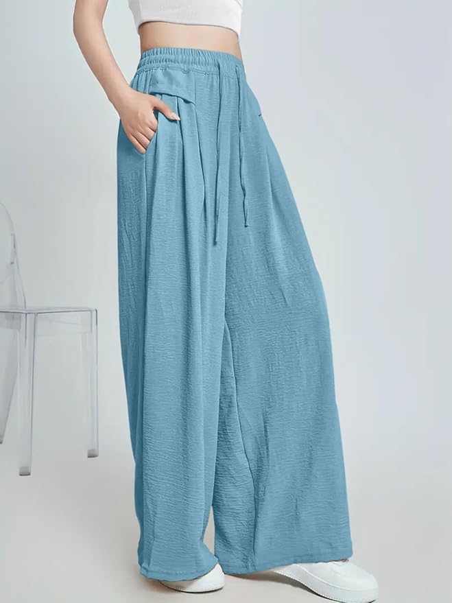 High Waist Polycotton Trousers for Women – Flared Parachute Pants with Side Pockets | Casual Travel Cargo Pants