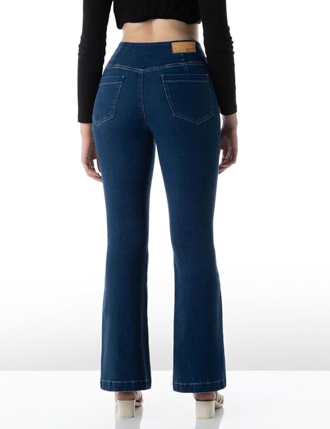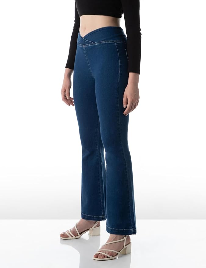 Women's Flared Pull-on Jeans - Mid-Rise| Enzyme Wash | Slant Waistband | Jeans for Women