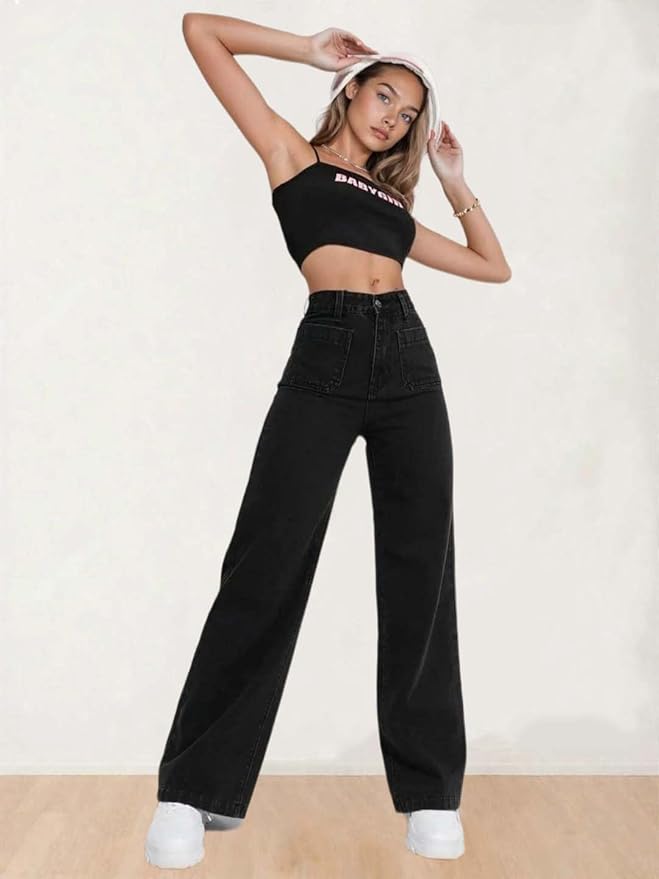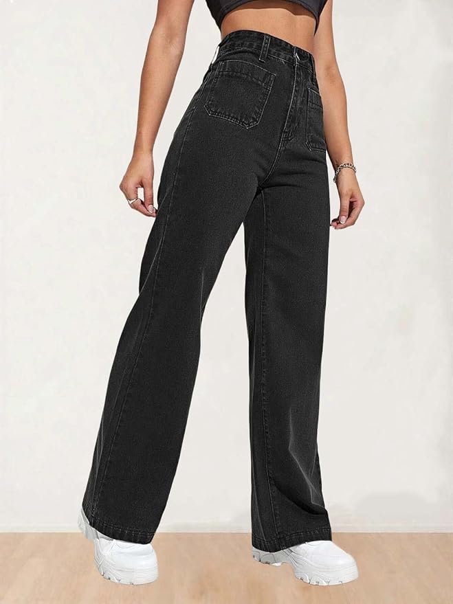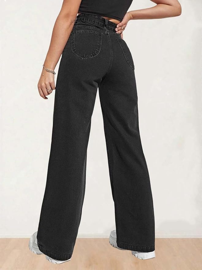 Women’s High Waist Wide Leg Button Coin Pocket Straight Fit Jeans Stylish Regular to Plus Size Fit Denim Jeans for Women
