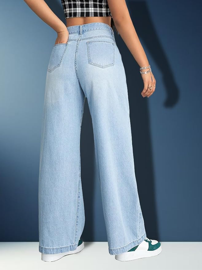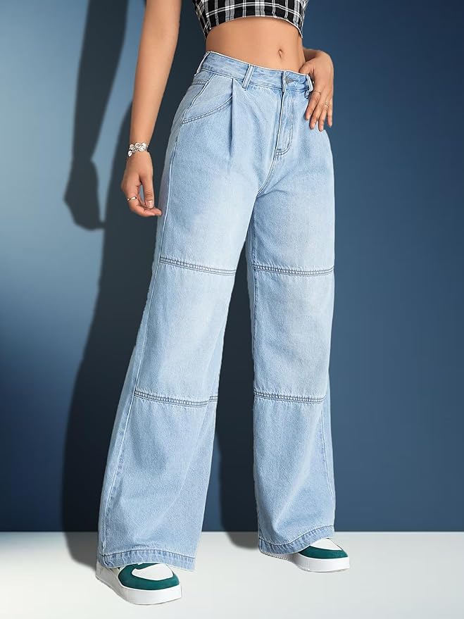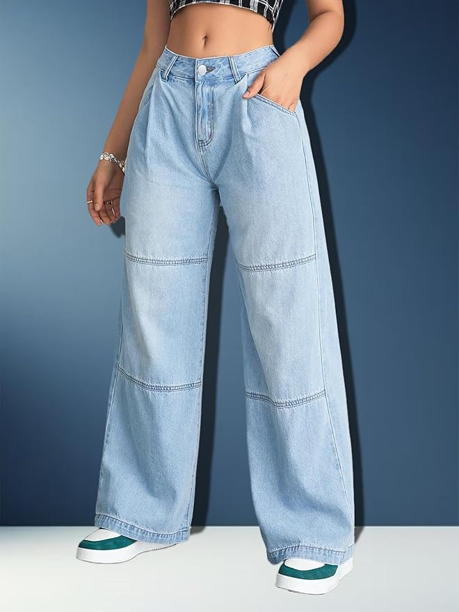 INKD Women's Stretchable Barrel Fit Jeans - High-Rise | Lightweight